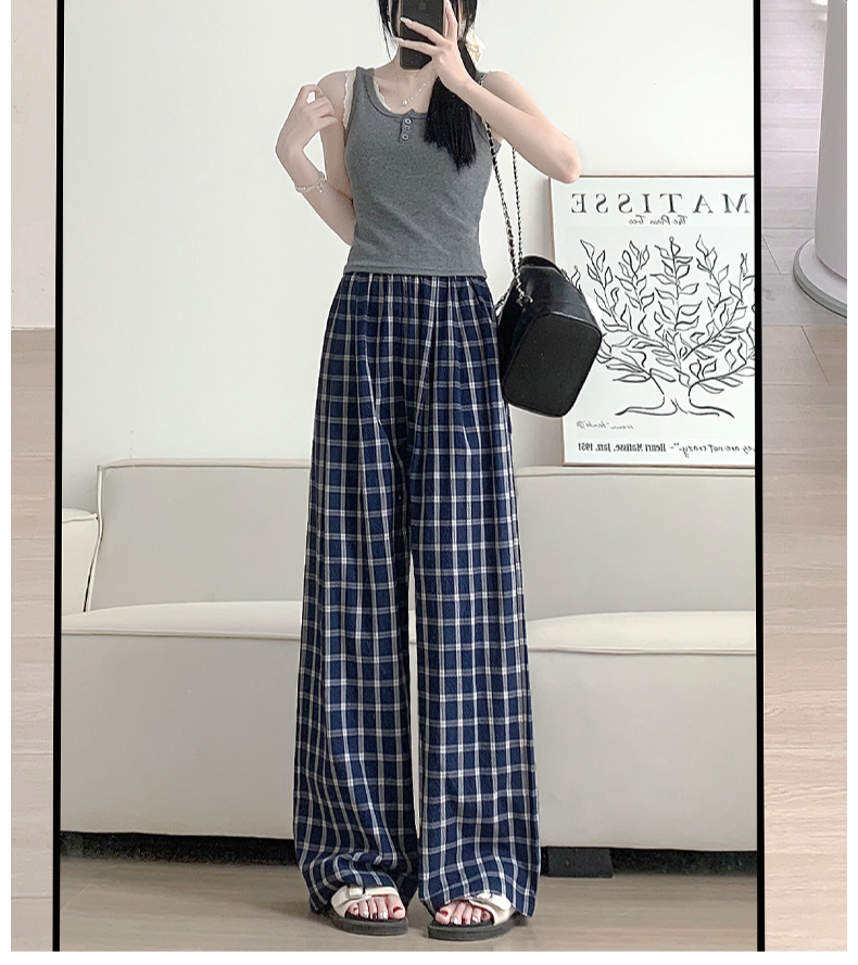 ハイウエストラフ感チェック柄ワイドパンツ
